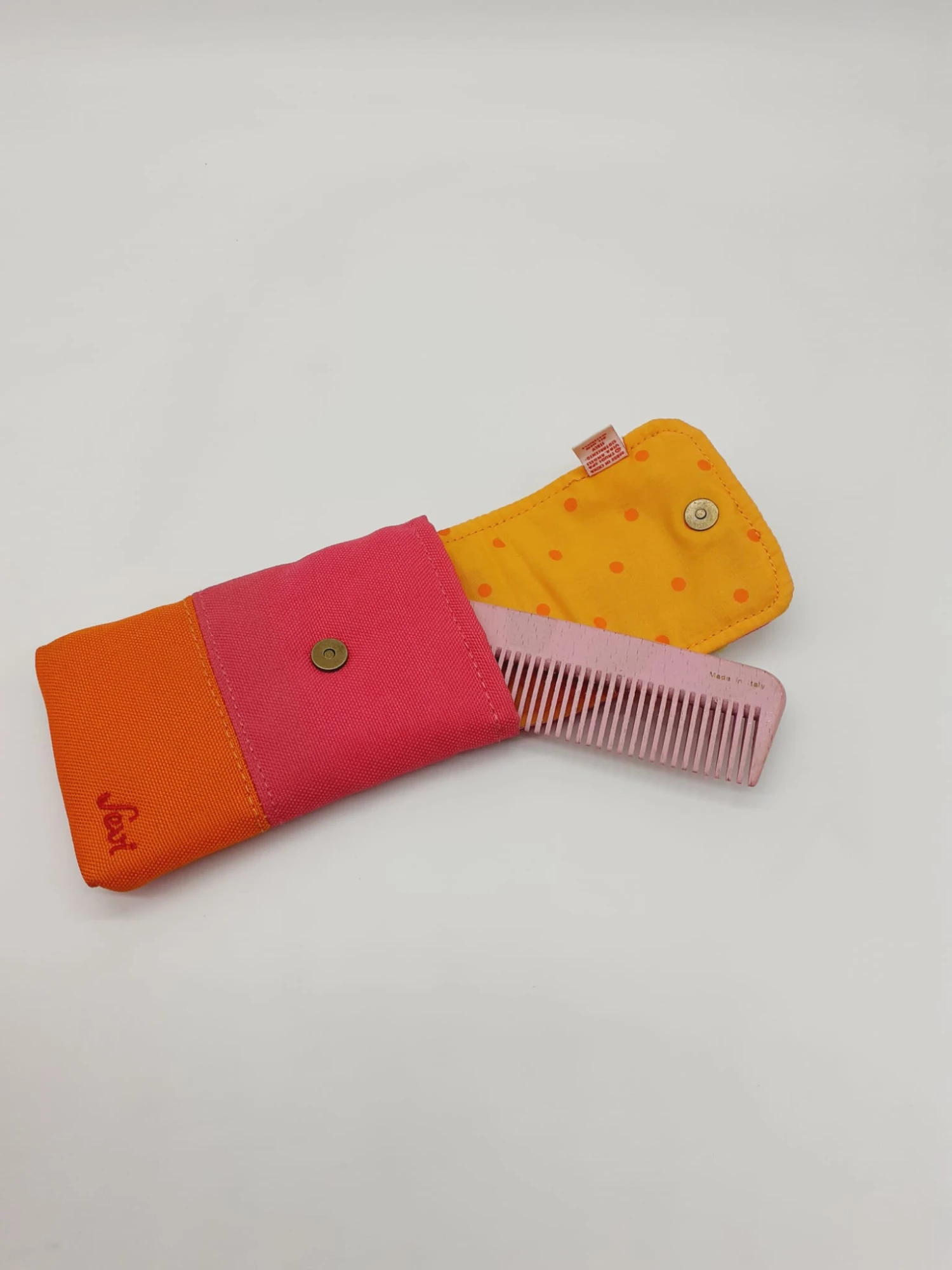 bustina con bottone magnetico porta pettine in legno