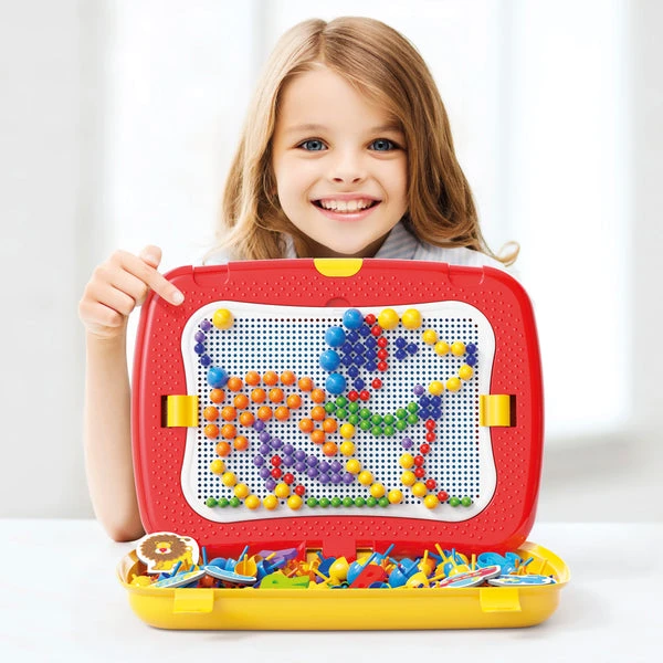 Due grandi “classici” in un’unica valigetta multifunzione: da una parte componi con i chiodini sulla tavoletta traforata, dall’altra impari a scrivere con le letterine magnetiche o con il pennarello a secco sulla lavagna. Combi ha un design così simpatico e accattivante, tutto senza spigoli e con forme molto arrotondate, che si lascia maneggiare con estrema facilità e in piena sicurezza: lo schermo, infatti, si alza e si abbassa, si sfila e poi si ribalta con semplici movimenti intuitivi. Il tutto, grazie all’inconfondibile manigliona, lo puoi trasportare dove vuoi dopo aver messo tutto a posto in un baleno nell’apposito cestello.