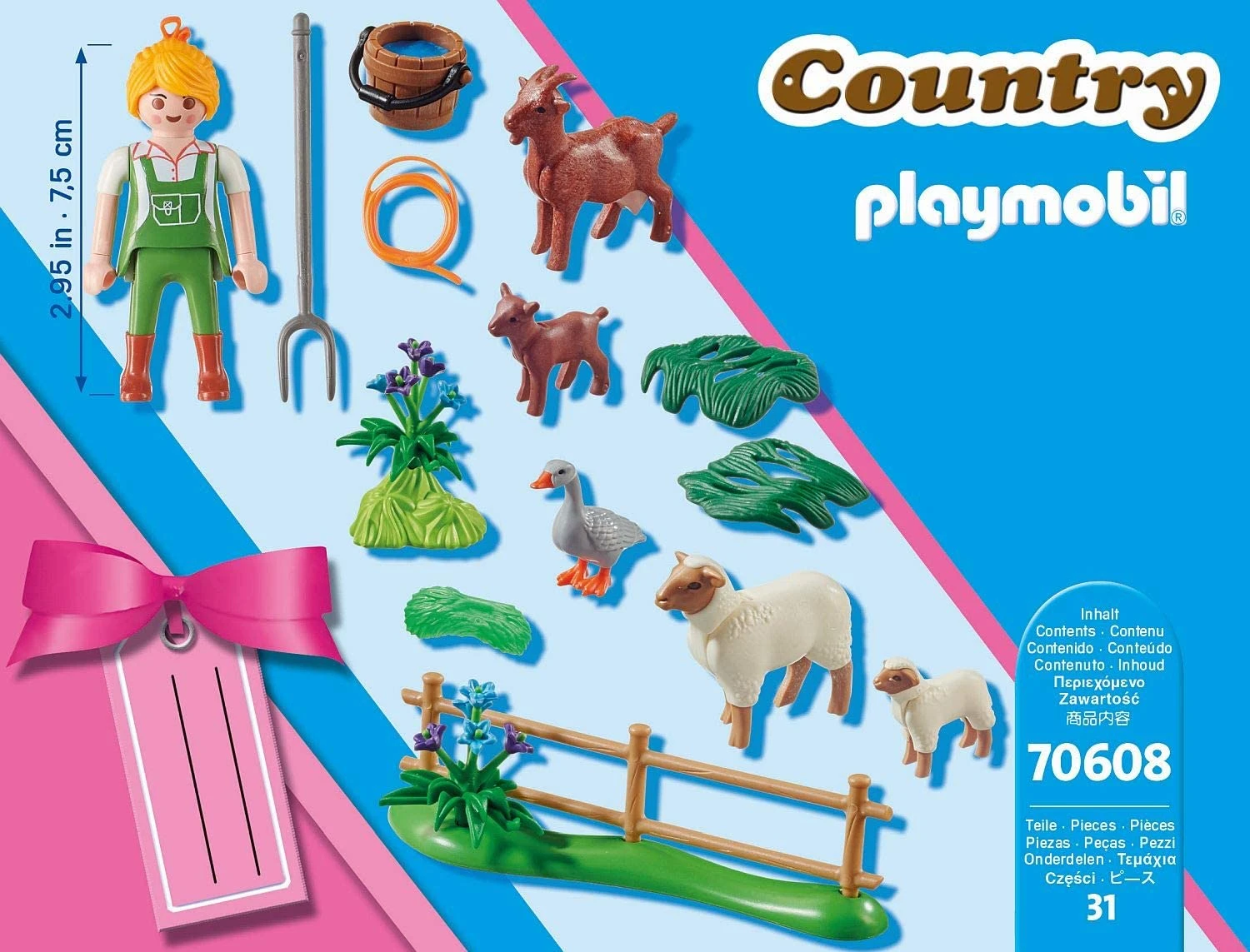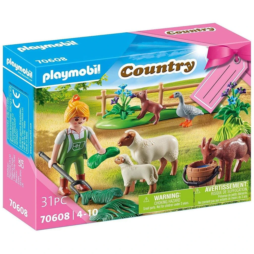 La moglie del contadino ama la vita di campagna. Si sente più a suo agio all’aria aperta. Ogni giorno si prende cura dei suoi animali, porta loro acqua fresca, cibo e pulisce i loro recinti. Pecore, capre e anatre aspettano sempre con impazienza la contadina e accorrono felici. I gift set PLAYMOBIL hanno un grazioso biglietto tag decorato sulla scatola con tutto lo spazio per i tuoi Auguri! Regala il divertimento!