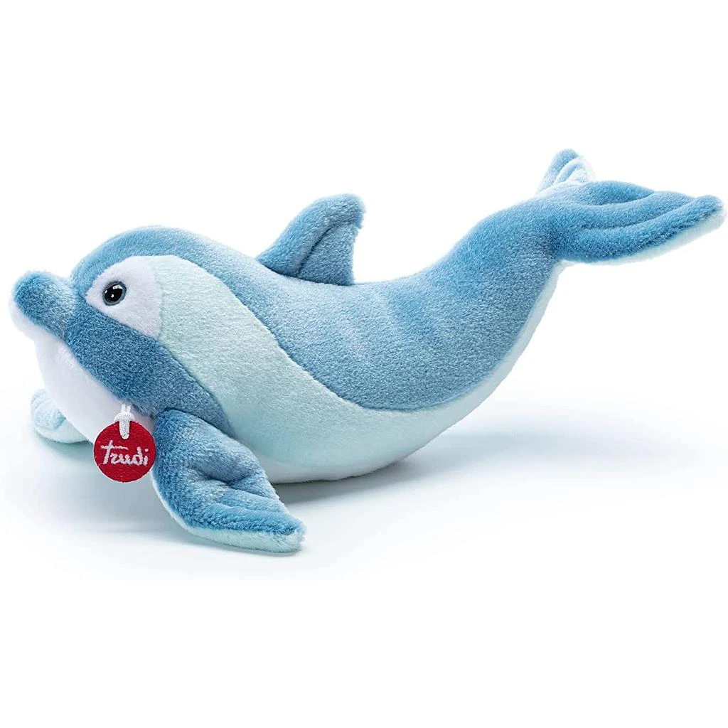 Questo delfino Trudi, riprodotto nei suoi caratteristici toni, è pronto a cavalcare le onde e a divertirsi! La posa infatti è quella di un tuffo nell’acqua, assieme ad un giocoso sorriso e uno sguardo furbo.