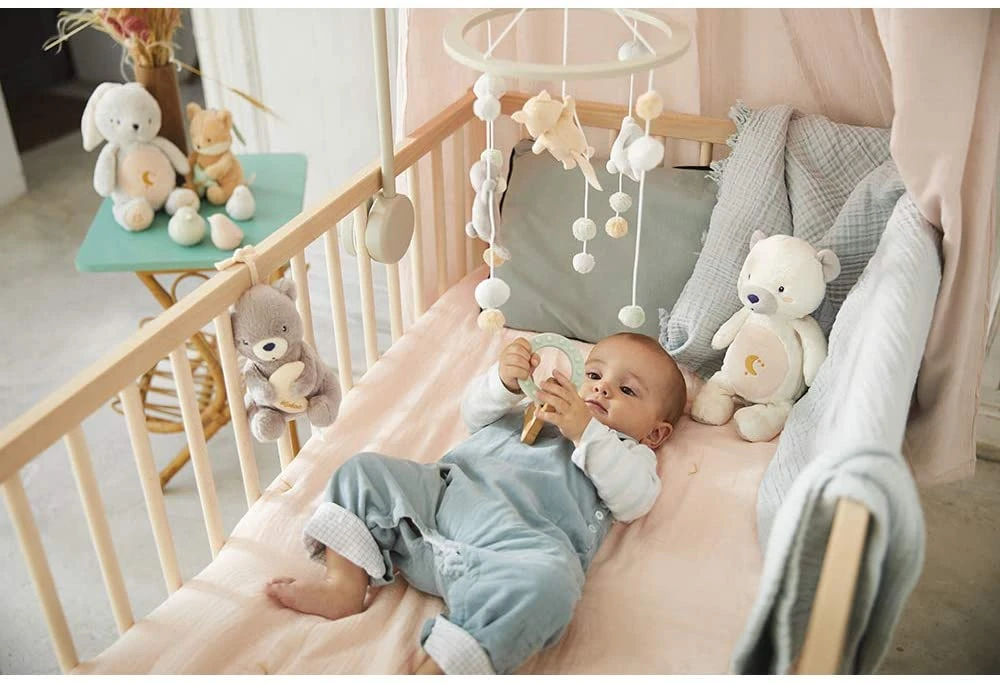 Questa morbida luce notturna conforta il bambino giorno e notte. Questo peluche ha una scatola luminosa rimovibile nella sua tasca che puoi accendere o spegnere con una semplice pressione. La sua funzione di spegnimento automatico è molto pratica: la luce si spegne dopo 20 minuti di utilizzo. – Autonomia 16h – Tempo di ricarica: 4-5h