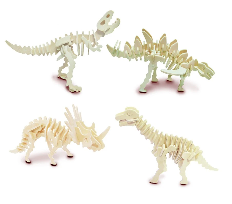 kit di 4 dinosauri in legno pretagliato da assemblare