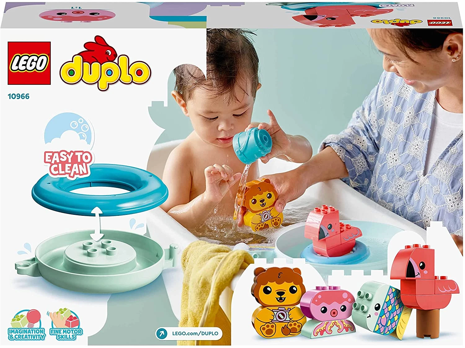 - Giocattolo multiuso per il bagnetto: Il mio primo LEGO® DUPLO® Ora del bagnetto: Isola degli animali galleggiante (10966) è un set di gioco versatile e facile da pulire, con cui è possibile costruire un’isola utilizzabile anche come contenitore