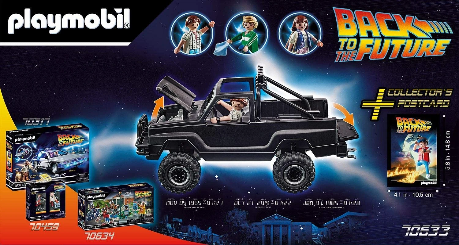 L’iconico Pickup di Marty McFly include Marty McFly con Jennifer Parker e Biff Tannen in abiti del 1985. Con card da collezione per i veri fan del film cult. Dimensioni pickup: 25 x 12 x 13 cm (LxPxA)