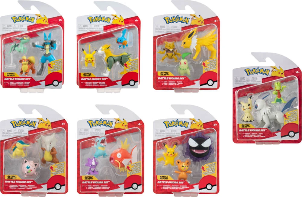 Questi personaggi Pokémon da 2″ e 3″ sono pronti per l’azione! Ogni set di figure Lotta Pokémon viene fornito con due personaggi da 2″ e un personaggio da 3″!