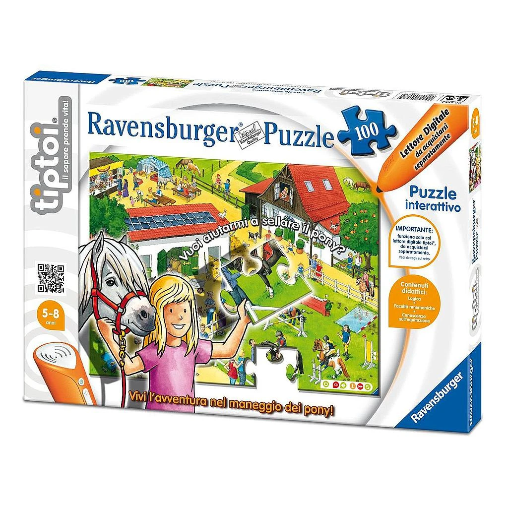 - Il giocatore dovrà il tiptoi sul sacco della biada e poi sul pony. Come ringraziamento, gli verrà indicata la mossa successiva. Puzzle interattivo da 100 pezzi: Ora anche i puzzle prendono vita! tiptoitrasforma i puzzle Ravensburger in un’esperienza di gioco completamente nuova: una volta composto il puzzle, grazie al lettore digitale, l’immagine si anima.