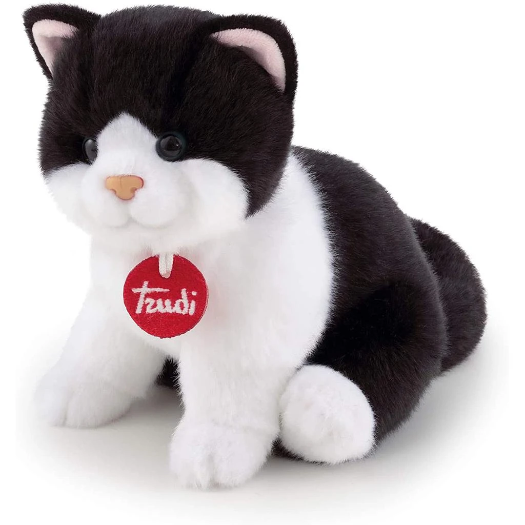 Un delizioso gattino bianco e nero, il più semplice e riconoscibile, quello che molti di noi hanno avuto come piccolo compagno di giochi. La posizione seduta e l’espressione ingenua gli conferiscono un tocco di dolcezza. Le zampette posteriori sono posizionate accuratamente per rappresentare i gatti poco più che cuccioli. Realizzato con la massima cura in ogni suo piccolo particolare, è un prezioso peluche che tutti gli amanti dei gatti adoreranno.