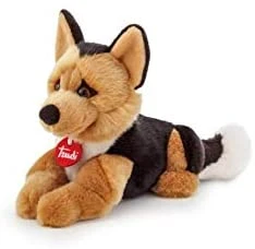 Rusty è un cucciolo di pastore Tedesco, il cane più diffuso in Italia. La varietà dei materiali utilizzati e l’impiego di diverse lunghezze di pelo permette la riproduzione delle caratteristiche tipiche di questa razza: la mascherina attorno agli occhi, le zampe tondeggianti, la coda lunga e folta. Il Pastore Tedesco viene così riprodotto in maniera fedele grazie alla massima cura dei dettagli, ma è interpretato in stile Trudi per conferirgli un’ espressione dolce e affettuosa. Il peluche è lavabile in lavatrice a 30°, quando la misura lo consente; in alternativa può essere lavato a mano, utilizzando una spugna e sapone neutro.